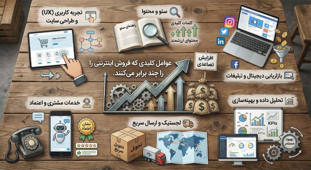 افزایش فروش اینترنتی یک اتفاق شانسی نیست؛ یک مسیر کاملاً علمی و هدفمند است. اگر بستر شما حرفهای باشد، اگر دیده شوید، اگر درست تبلیغ کنید و اگر بتوانید اعتماد مشتری را جلب کنید، فروش شما به شکل قابلتوجهی افزایش خواهد یافت.
